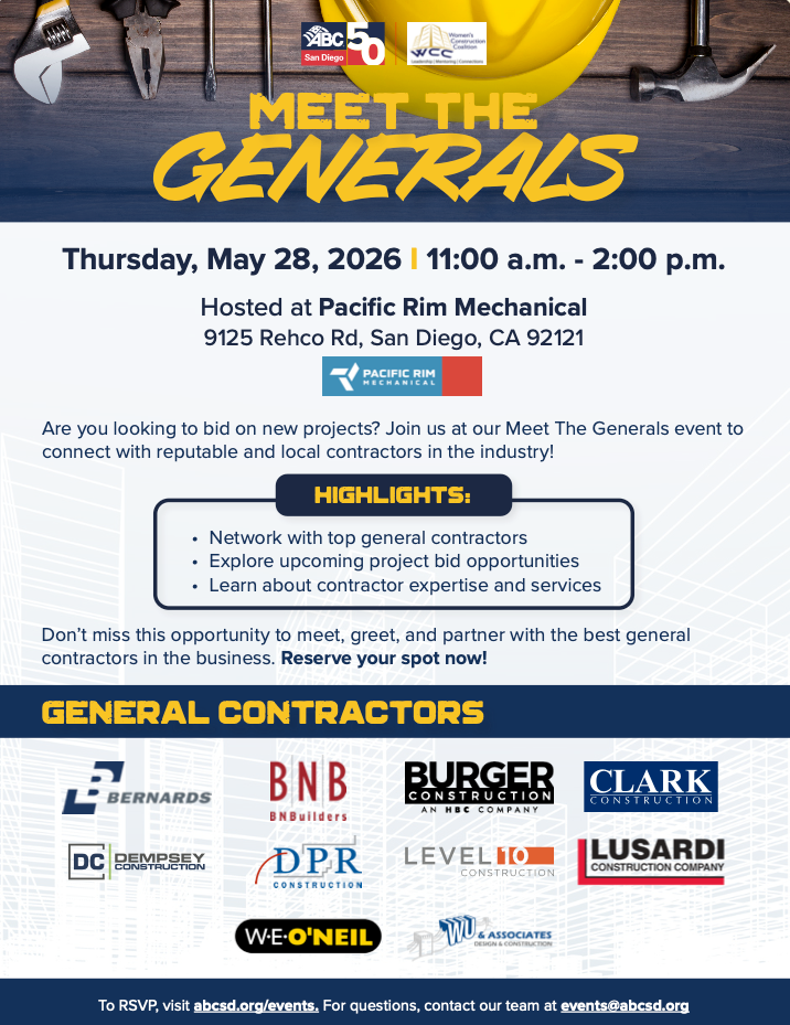 We’re partnering with ABC San Diego to bring an interactive networking event designed to strengthen relationships between General Contractors and Subcontractors while highlighting the collaborative culture of our construction community.