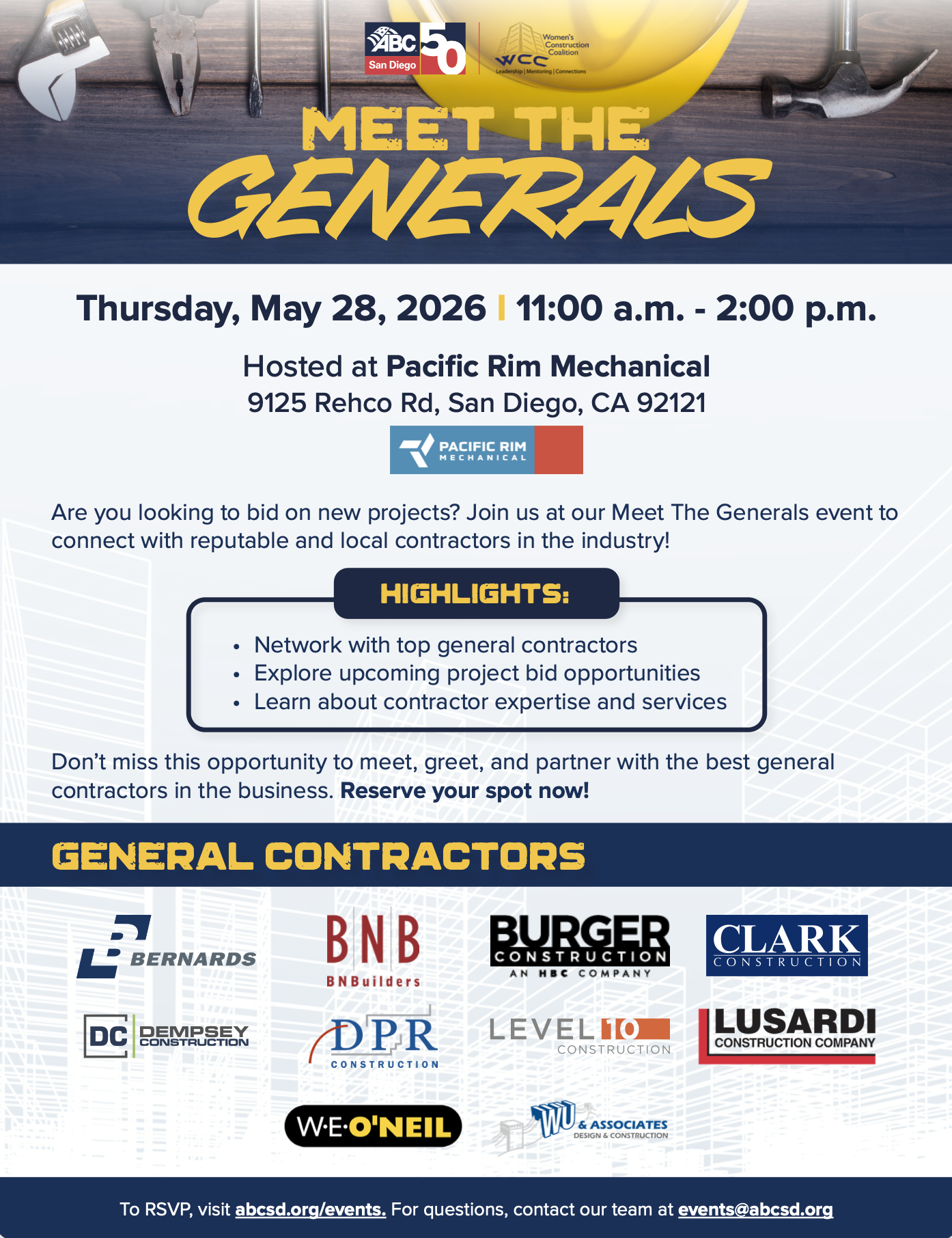 We’re partnering with ABC San Diego to bring an interactive networking event designed to strengthen relationships between General Contractors and Subcontractors while highlighting the collaborative culture of our construction community.